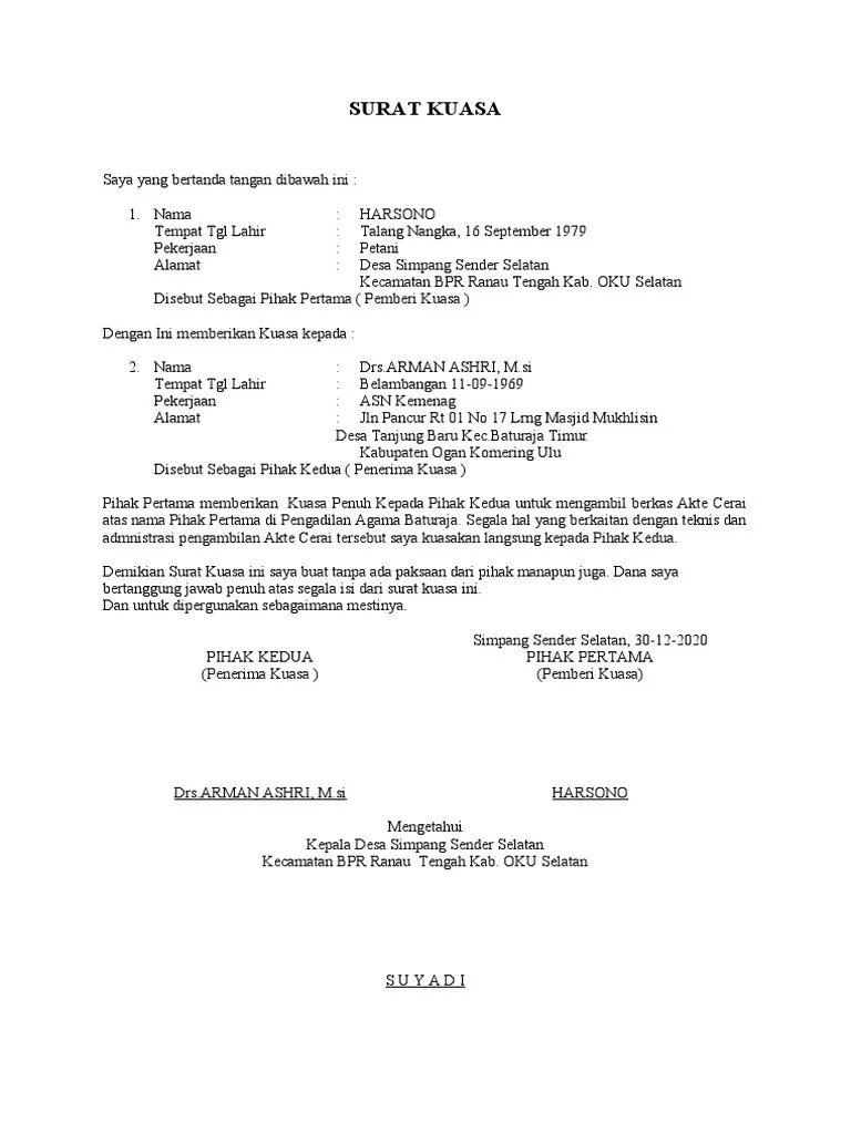 Contoh surat kuasa pengambilan akta cerai format docpdf ulasan ini dibuat khusus untuk menjawab persoalan anda khususnya dalam mengurusmembuat surat kuasa pengambilan akta cerai. Contoh surat cerai dari mahkamah era 80an google search perceraian surat. Contoh surat kuasa pengambilan surat cerai di pengadilan. Sy mau ambil akta cerai tapi petugas pengadilan meminta surat permohonan sedangkan sy tidak tahu spt apa surat permohonannya, bisakah bantu sy dibuatkan contoh surat permohonannya untuk pengambilan akta cerai sy, terima kasih. Disamping itu kami juga telah menyediakan link download khusus bagi anda yang membutuhkan file dokumennya dalam bentuk format doc (word) maupun pdf.